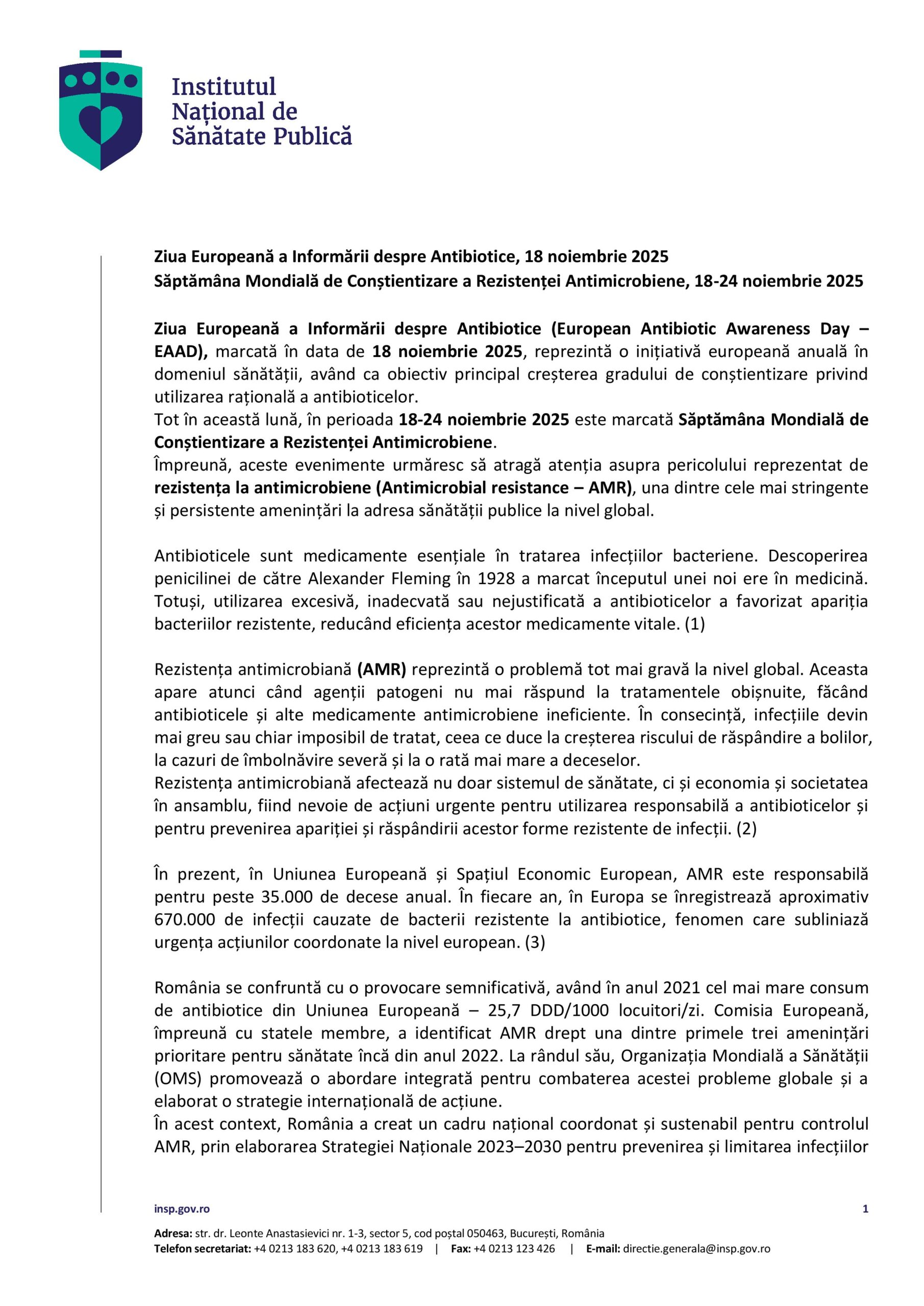 Ziua Europeana a Informării despre Antibiotice – 18 noiembrie 2025