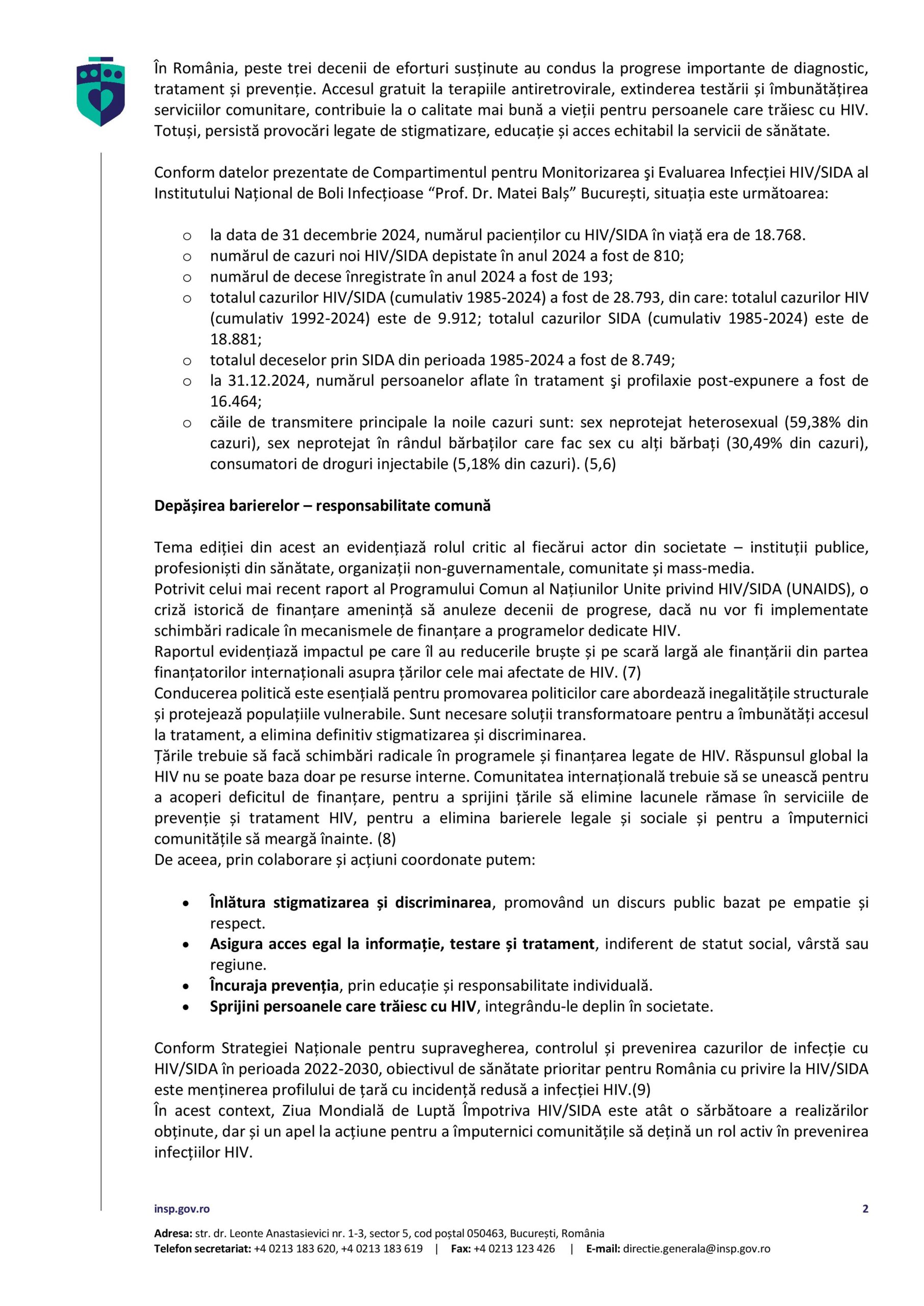 Ziua Mondială de Luptă Împotriva HIV/SIDA, 1 decembrie 2025