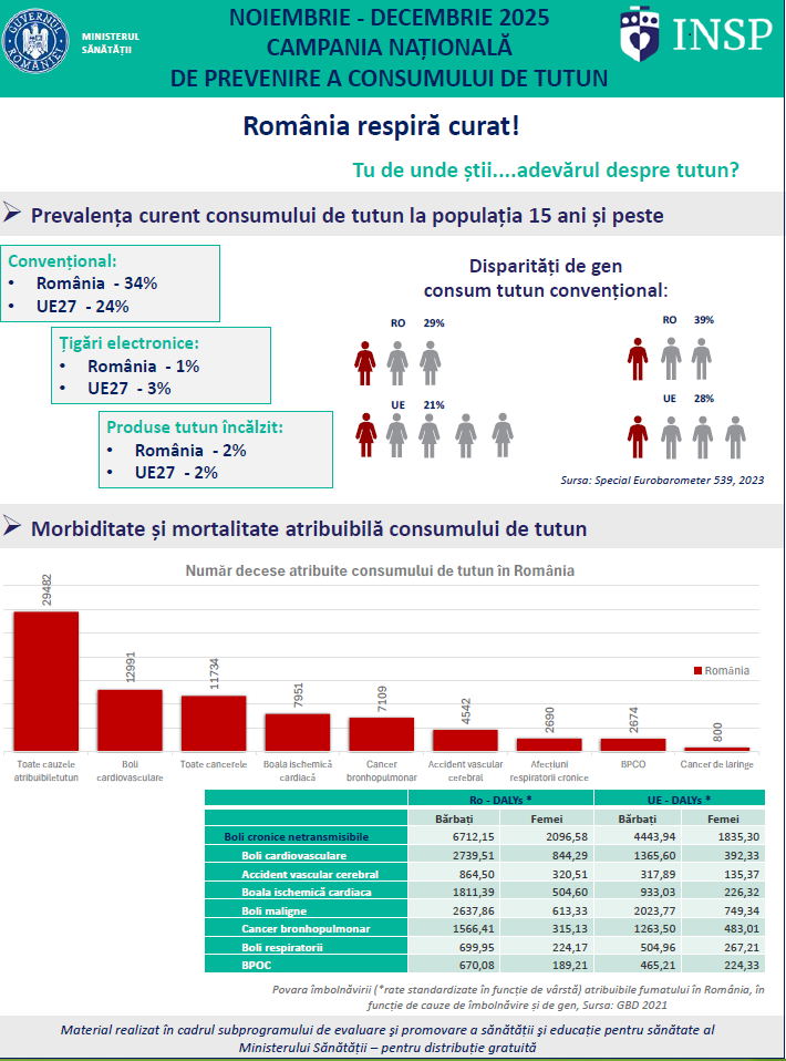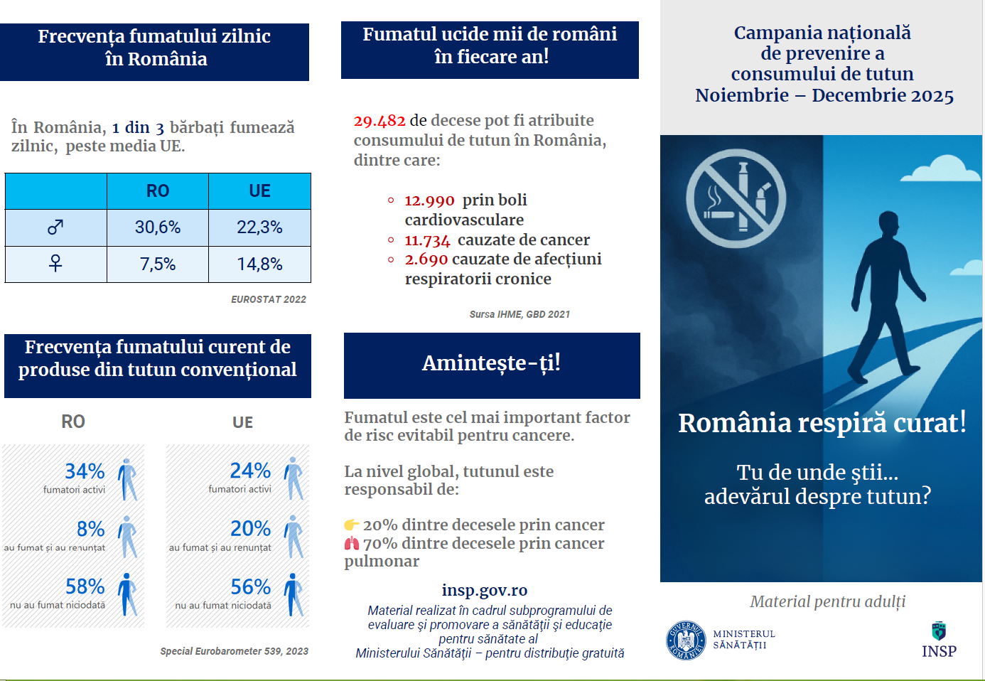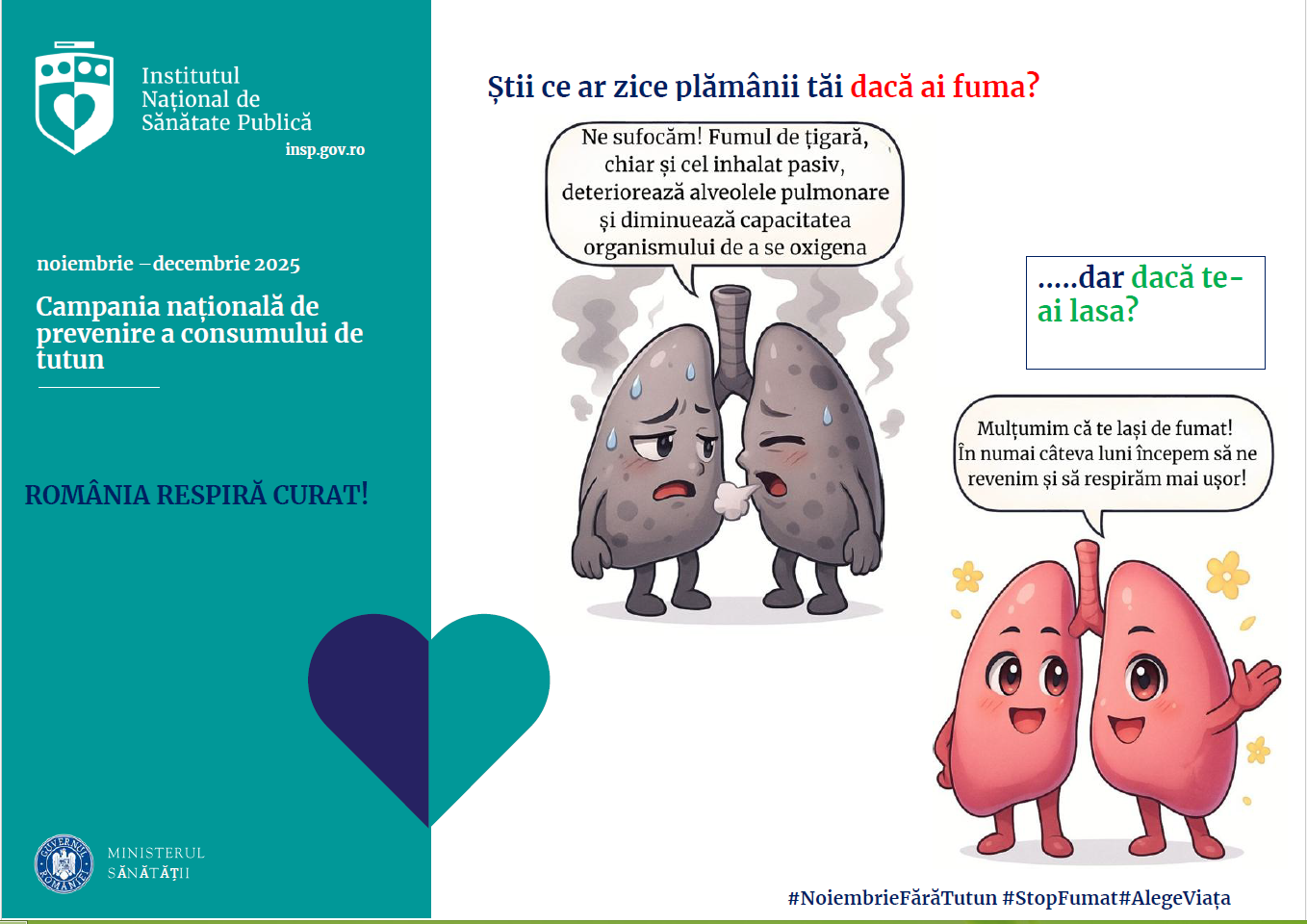 Campania națională de prevenție a consumului de tutun „ROMÂNIA RESPIRĂ CURAT!”noiembrie – decembrie 2025
