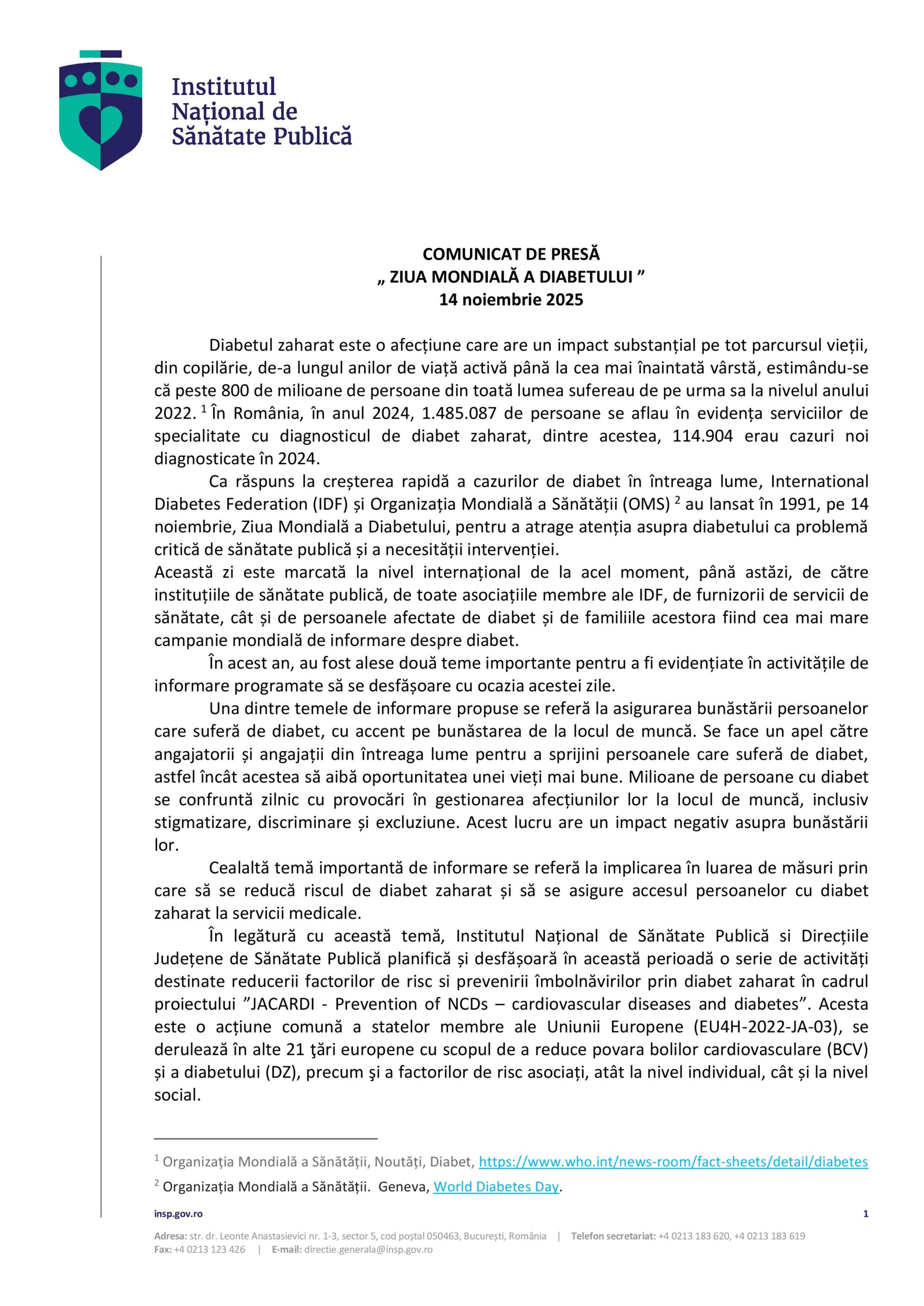 ZIUA MONDIALĂ A DIABETULUI, 14 noiembrie 2025