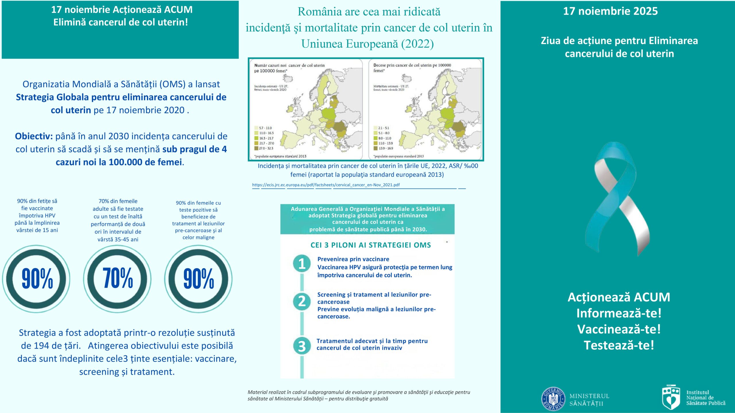 Ziua de acțiune pentru eliminarea cancerului de col uterin - 17 noiembrie 2025 - „Acționează ACUM: Elimină cancerul de col uterin!” - Fiecare moment contează. Fiecare viață contează.