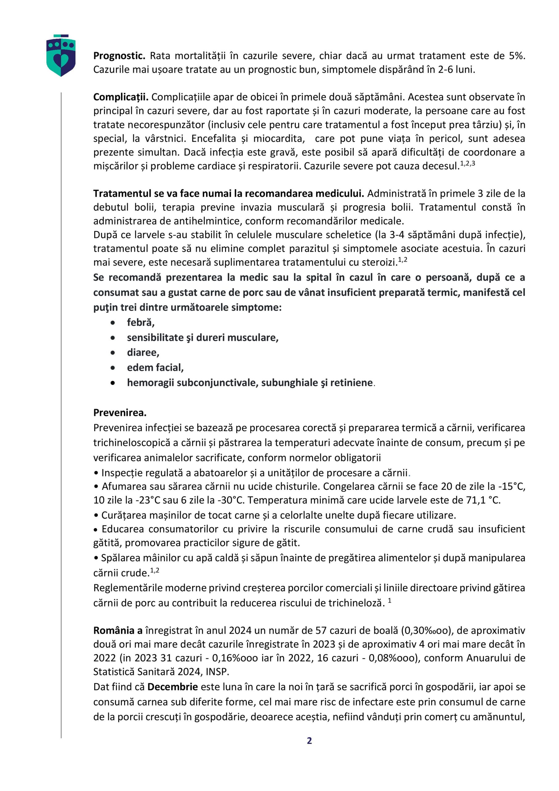 INFORMARE DESPRE TRICHINELOZĂ, decembrie 2025