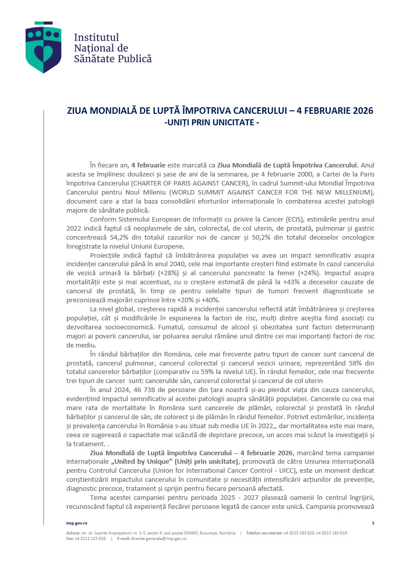 Informare - Ziua Mondială de Luptă Împotriva Cancerului - 4 februarie 2026