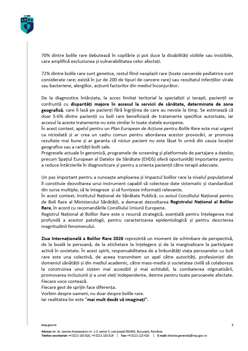 ZIUA INTERNAȚIONALĂ A BOLILOR RARE - 29 februarie 2026