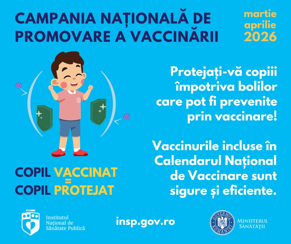 CAMPANIA NAȚIONALĂ DE PROMOVARE A VACCINĂRII „COPIL VACCINAT = COPIL PROTEJAT”, martie-aprilie 2026