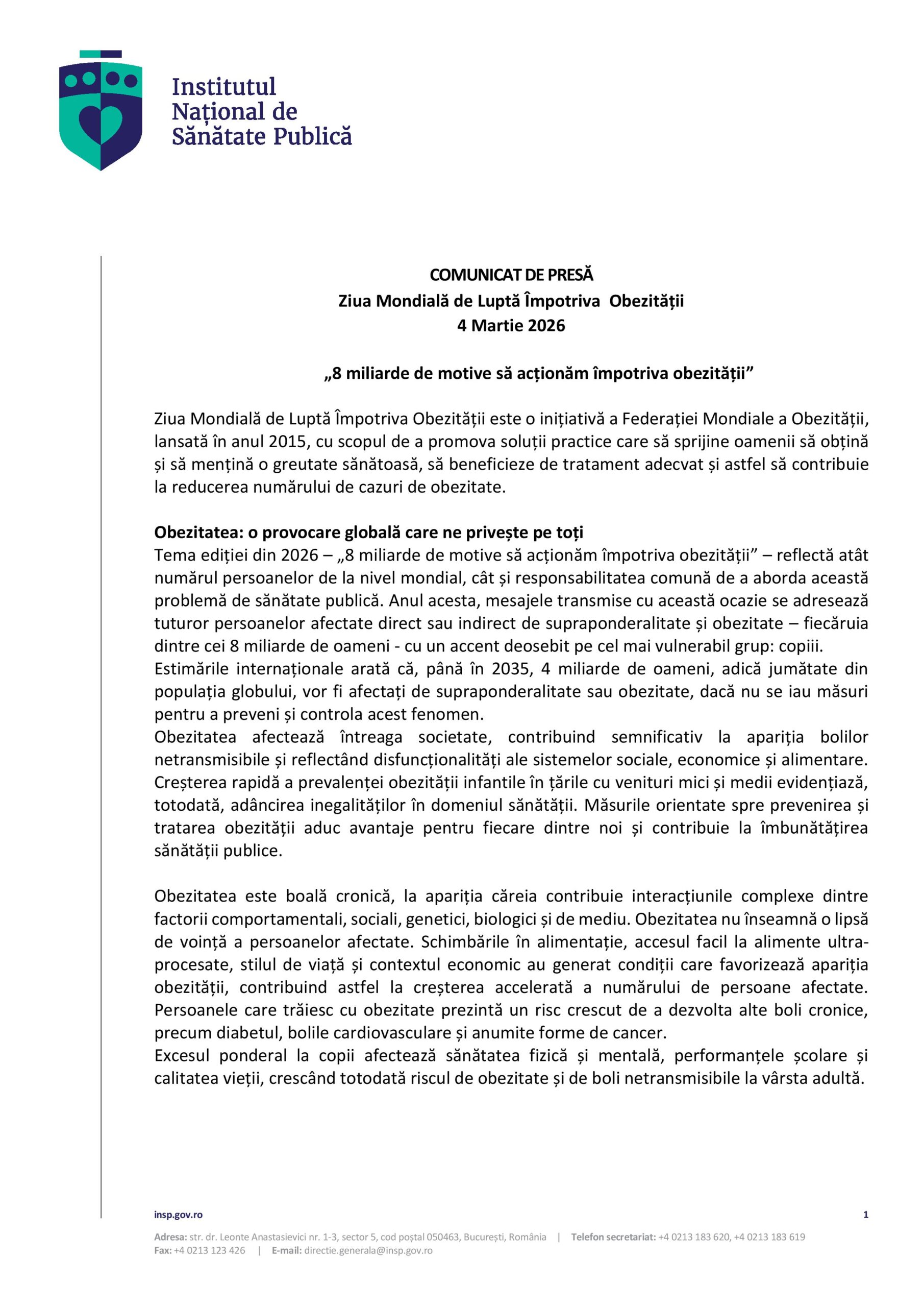 Ziua Mondială de Luptă Împotriva Obezității, 4 martie 2025