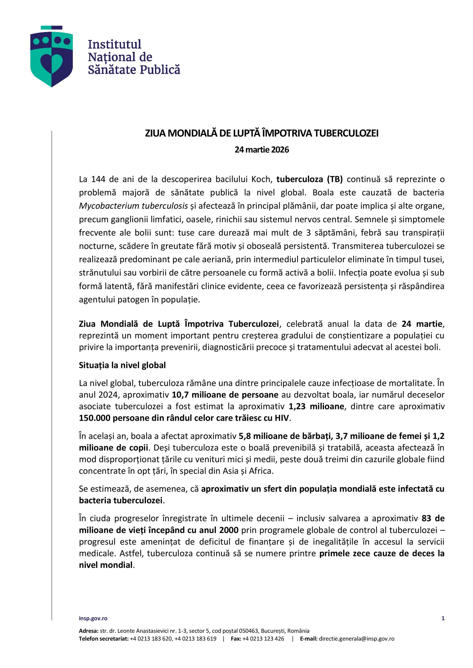 ZIUA MONDIALA DE LUPTA IMPOTRIVA TUBERCULOZEI, 24 martie 2025